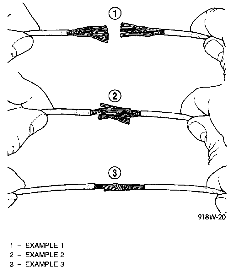 5. Push the two ends of wire together until the strands of wire are close to the insulation (Example 2).