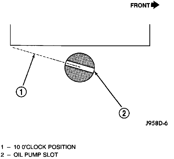 14. Observe slot in oil pump gear through hole on side of engine. It should be slightly before (counterclockwise of) 10 o'clock position.