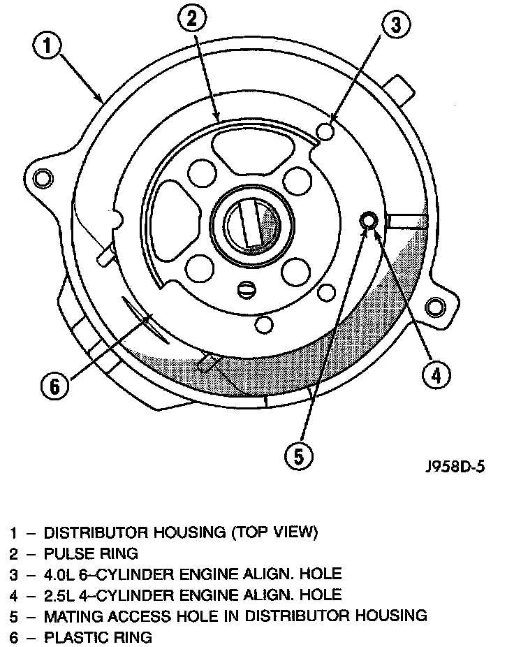 6. Four different alignment holes are provided on plastic ring. Note that 2.5L and 4.0L engines have different alignment holes.