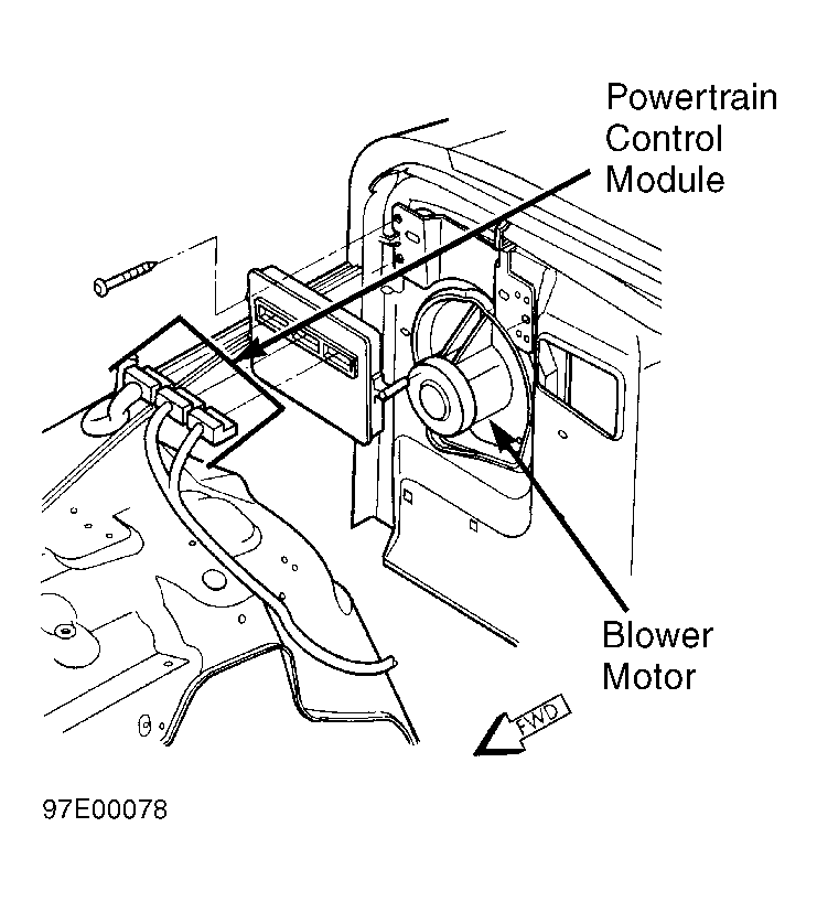 | Powertrain Control Module | In right rear of engine compartment, on firewall. See Figure . |