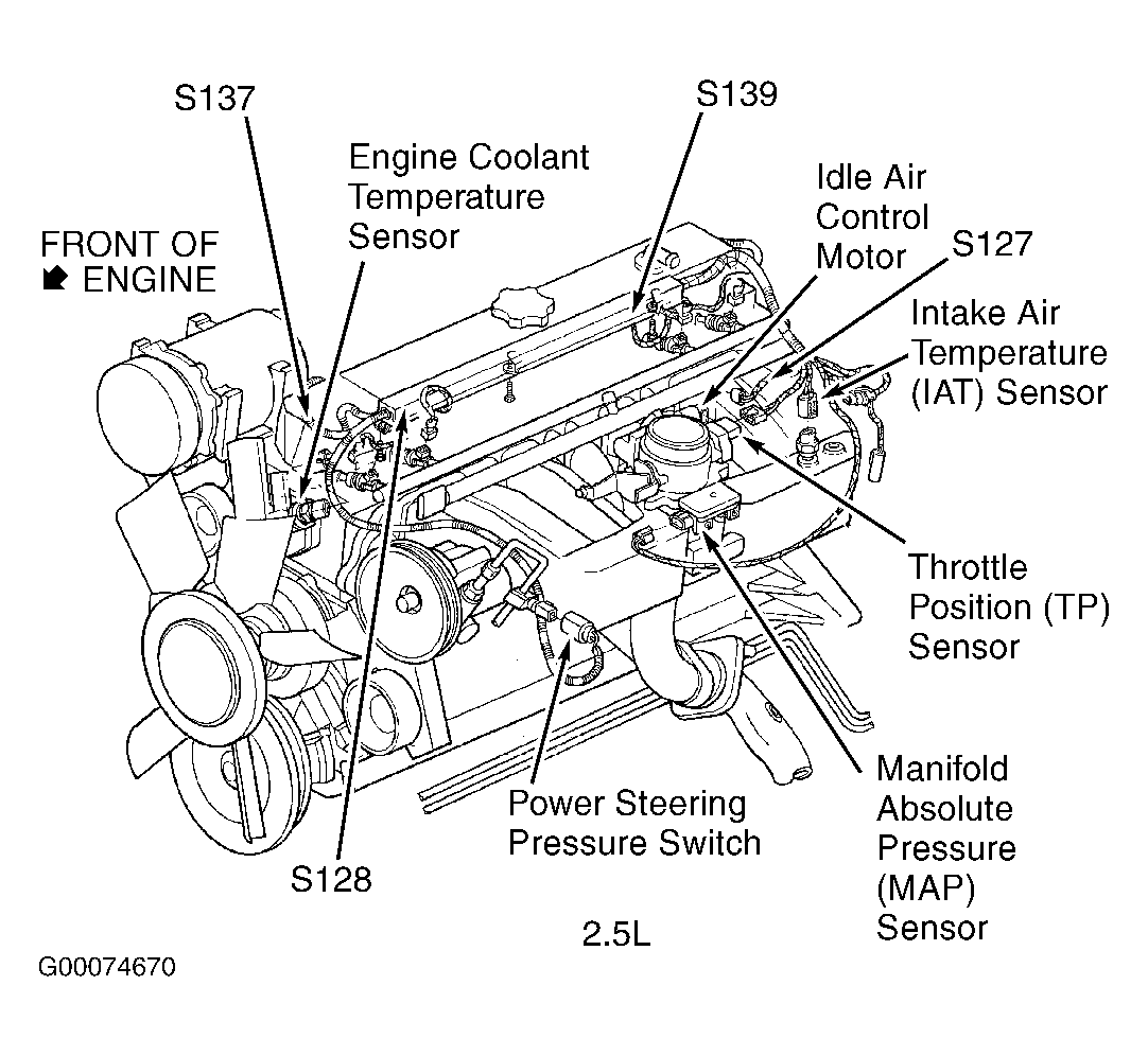 S137 (2.5L) Near breakout to engine coolant temperature sensor. See Figure .