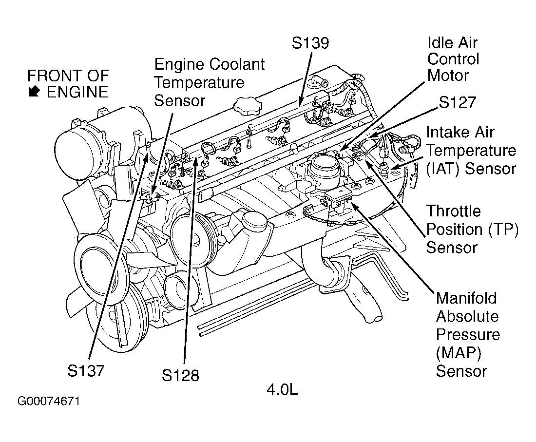 S127 (4.0L) Near breakout to IAC motor. See Figure .
