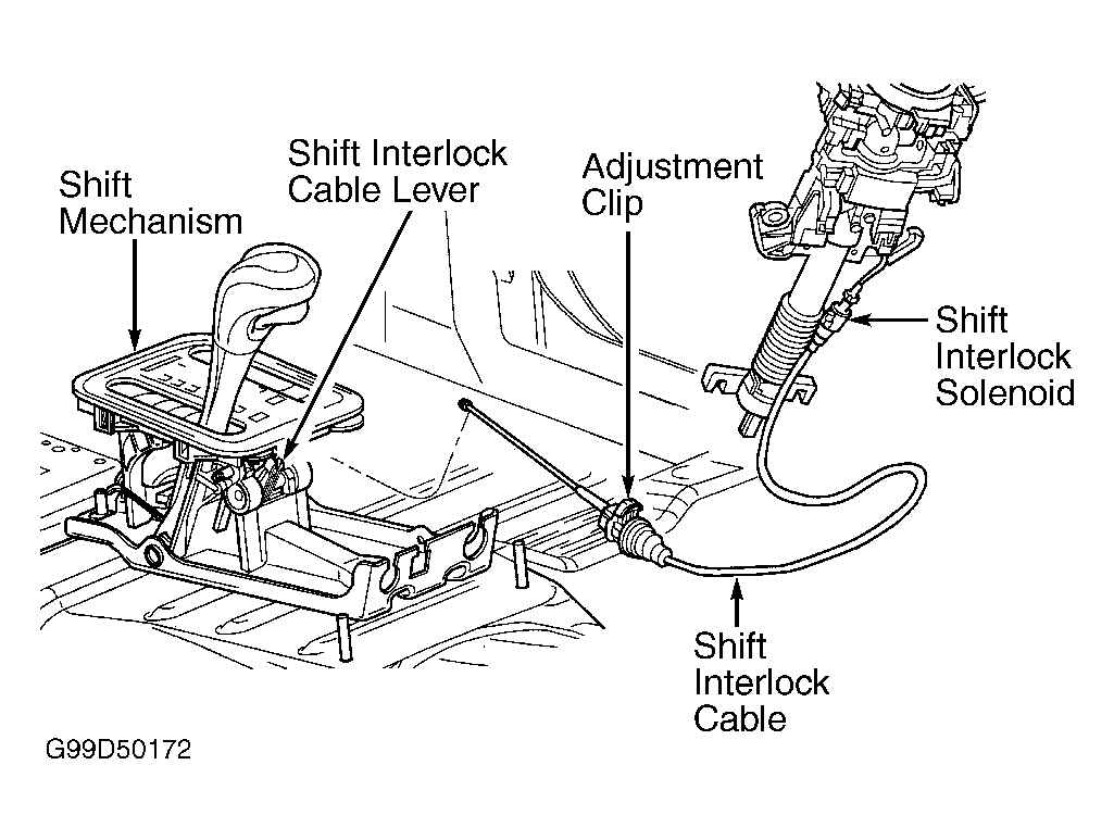 - With transmission out of Park, release brake pedal and attempt to shift transmission through all gears. Release shift button at least once during this procedure. With gear selector in any position except Park, attempt to turn ignition switch to LOCK position. Ignition switch should not go into LOCK position. Shift transmission back to Park. Turn ignition switch to LOCK position. If ignition switch can be turned to LOCK position, adjustment is okay.