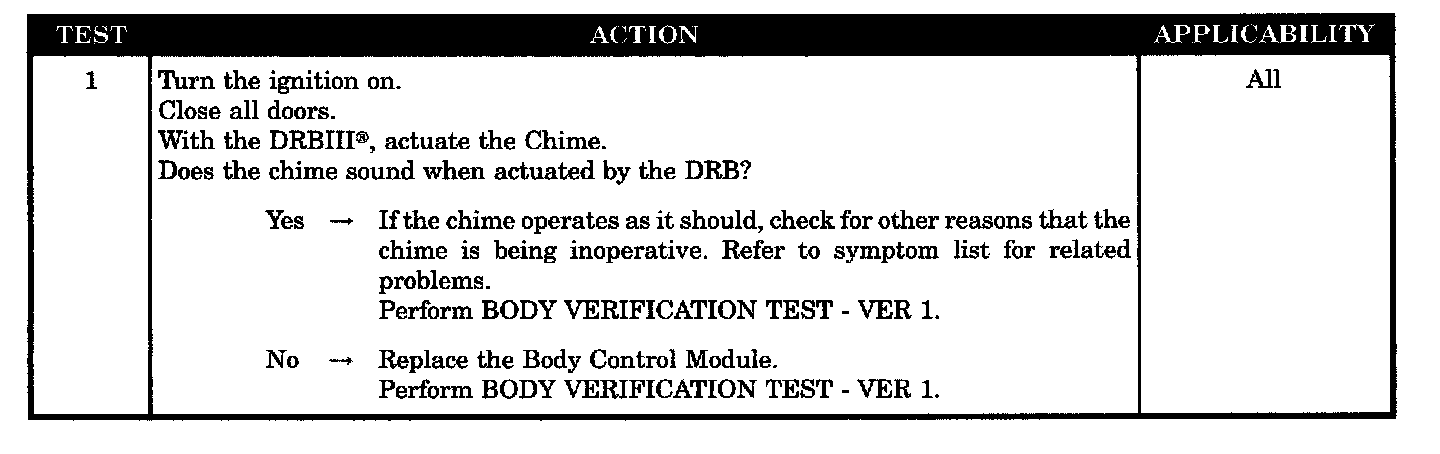 CHIME INOPERATIVE AT ALL TIMES