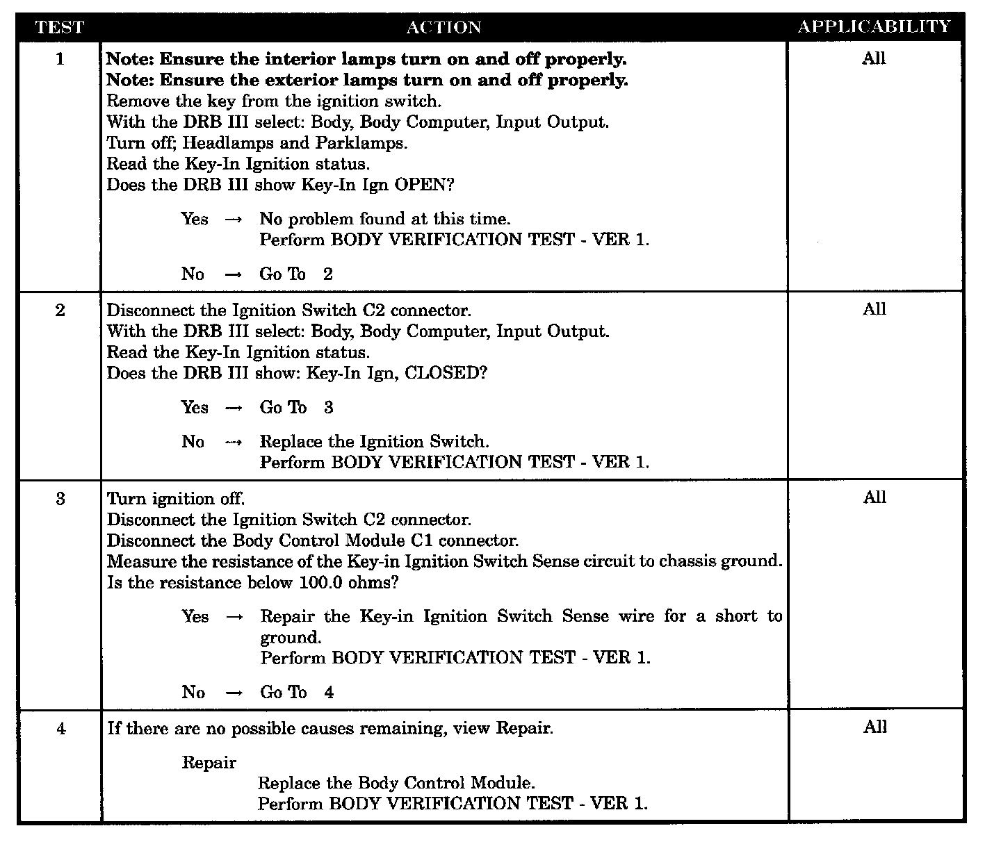 CHIME INOPERATIVE WITH DRIVER DOOR OPEN