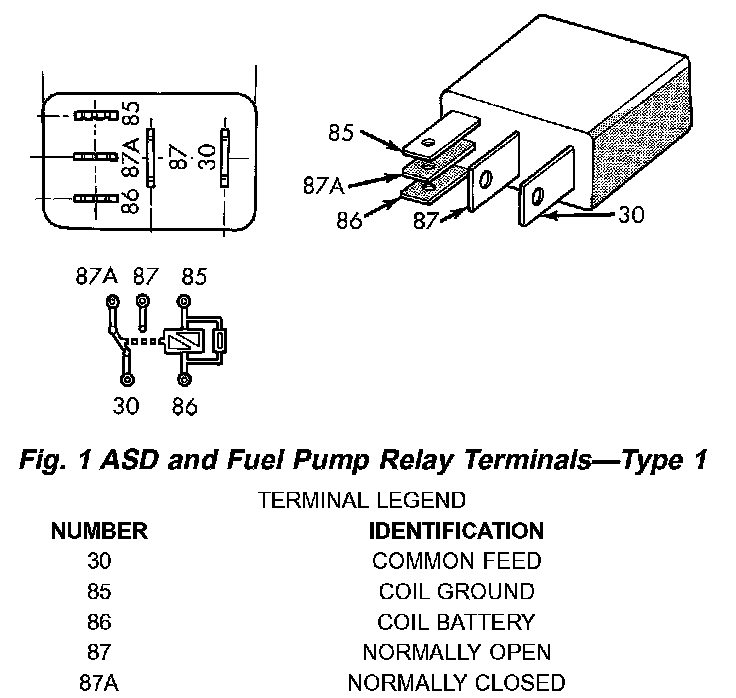 Fig.1 ASD And Fuel Pump Relay Terminals - Type 1: