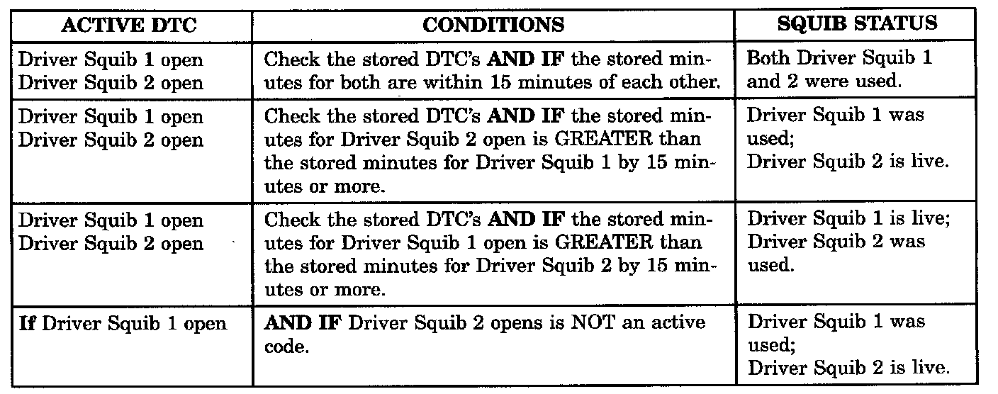 The code becomes active as soon as the malfunction is detected or key-on, whichever occurs first. An active trouble code indicates an on-going malfunction. This means that the defect is currently there every time the airbag control module checks that circuit or component. It is impossible to erase an active code. Active diagnostic trouble codes for the airbag system are not permanent and will change within 12 seconds the reason for the code is corrected. With the exception of the warning lamp trouble codes or malfunctions, when a malfunction is detected, the airbag lamp remains lit for a minimum of 12 seconds or as long as the malfunction is present.