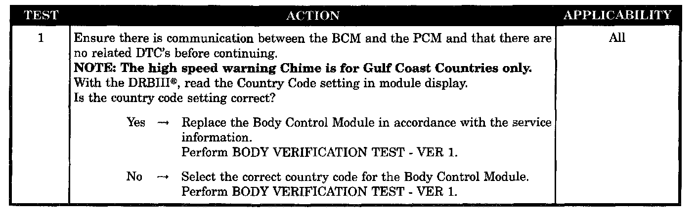Vehicle Speed Warning Chime Problem