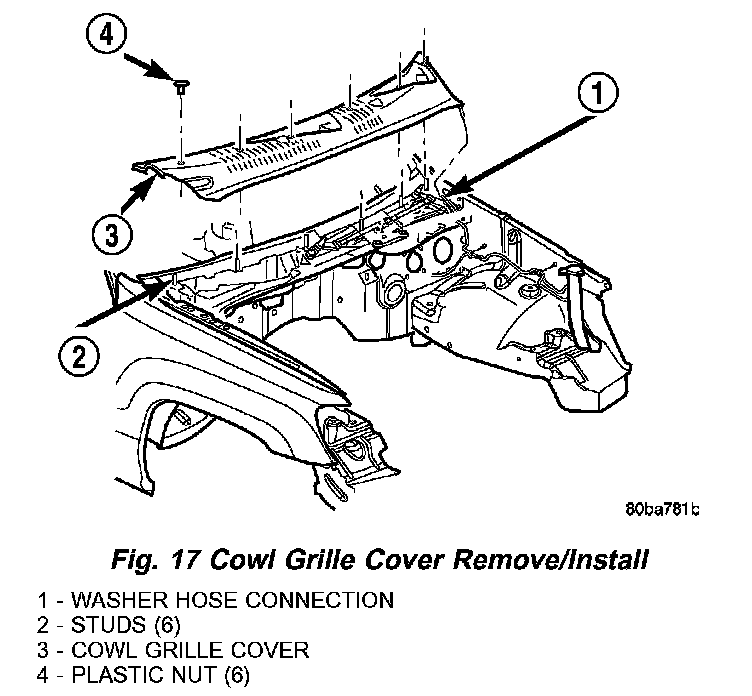 Fig. 17 Cowl Grille Cover Remove/Install: