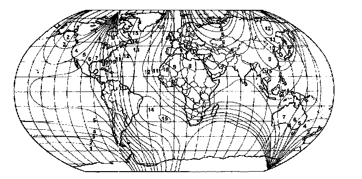 The compass is capable of distinguishing 8 primary directions: N, NE, E, SE, S, SW, W, NW. This electronic compass is designed to display readings relative to True North. All compasses measure readings relative to Magnetic North. The difference between Magnetic North and True North varies from place to place across the surface of the earth. Therefore, the compass must be told approximately where it is on the earth's surface so that the Magnetic North reading can be properly converted into a True North Display. This is done by separating different parts of the earth into numbered "Zone Variances" (see zone variance map). The Zone Variance in which the compass is to function must be entered into the compass.