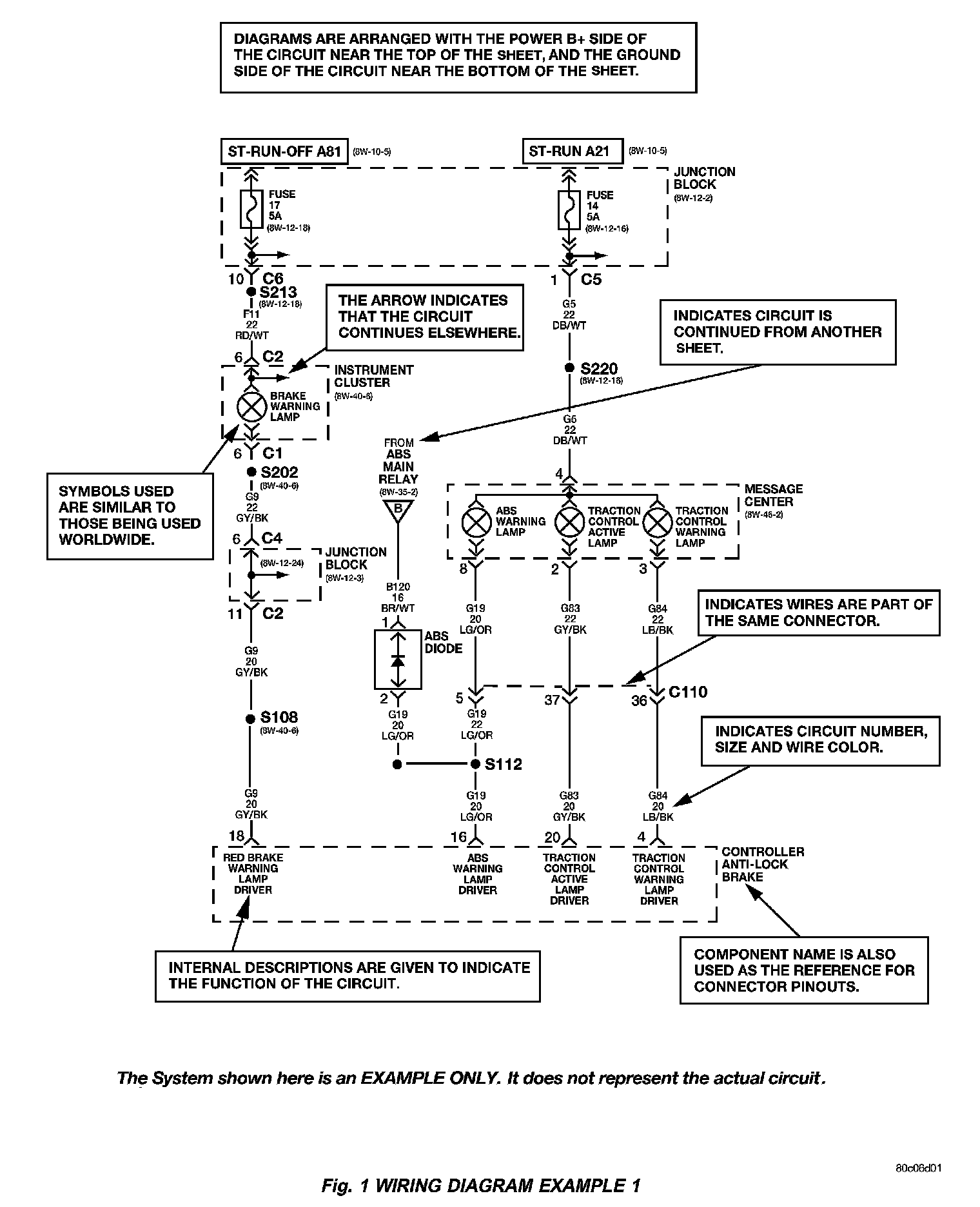 Diagrams are arranged such that the power (B+) side of the circuit is placed near the top of the page, and the ground (B-) side of the circuit is placed near the bottom of the page (Fig. 1).