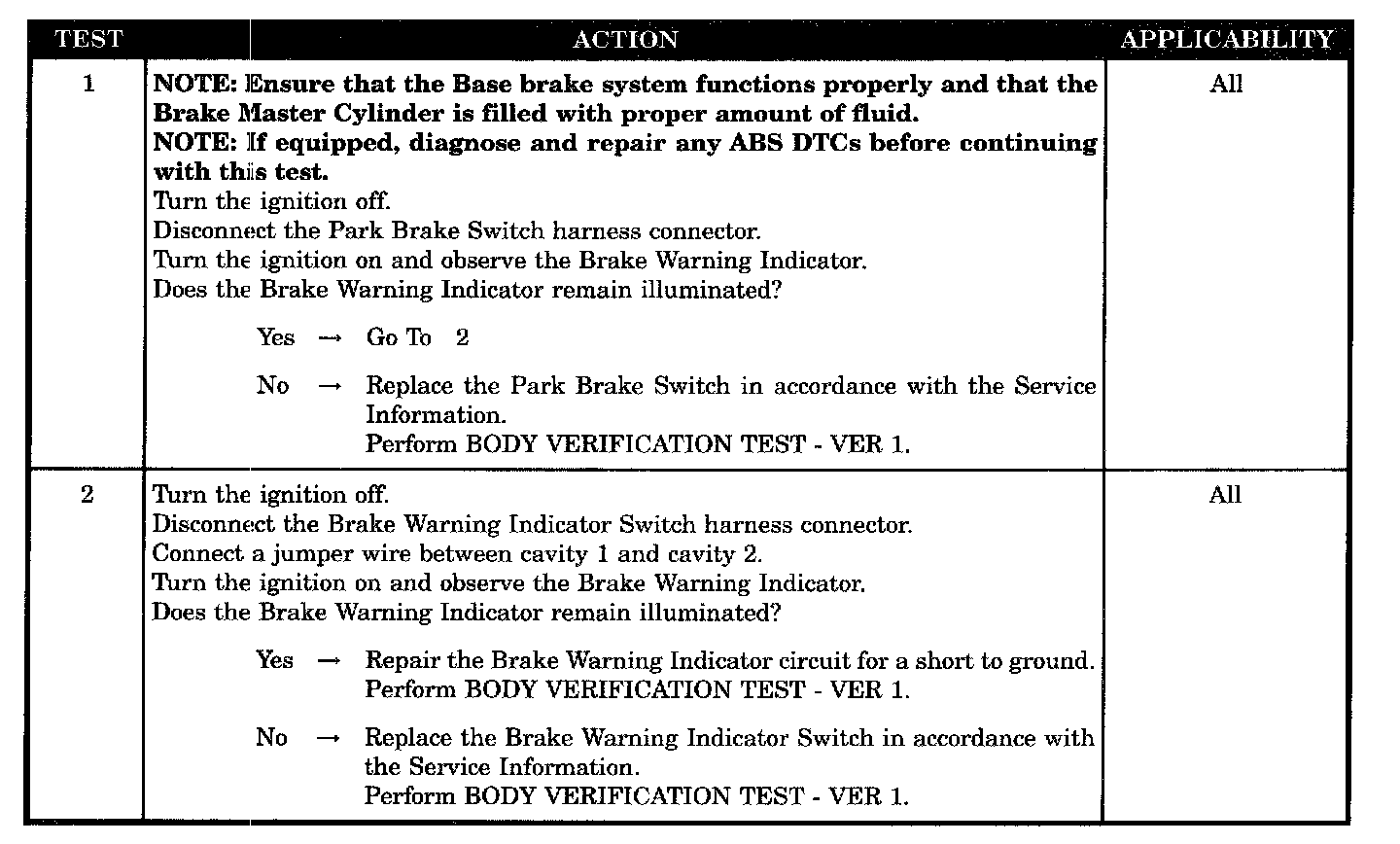 Brake warning indicator circuit short to ground