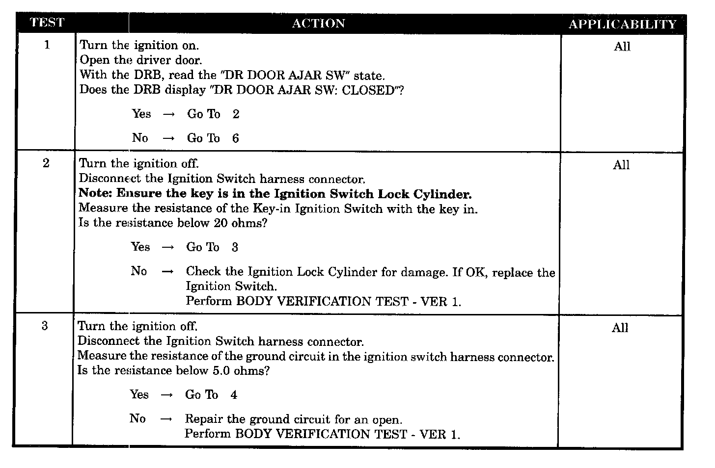 CHIME INOPERATIVE WITH KEY IN IGNITION, DRIVER'S DOOR OPEN