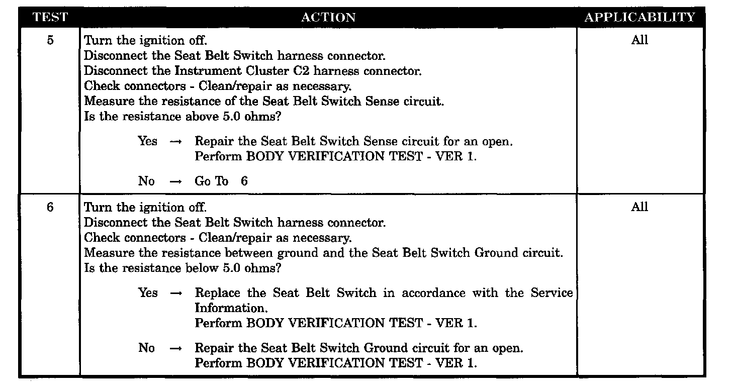 SEAT BELT INDICATOR NOT OPERATING PROPERLY