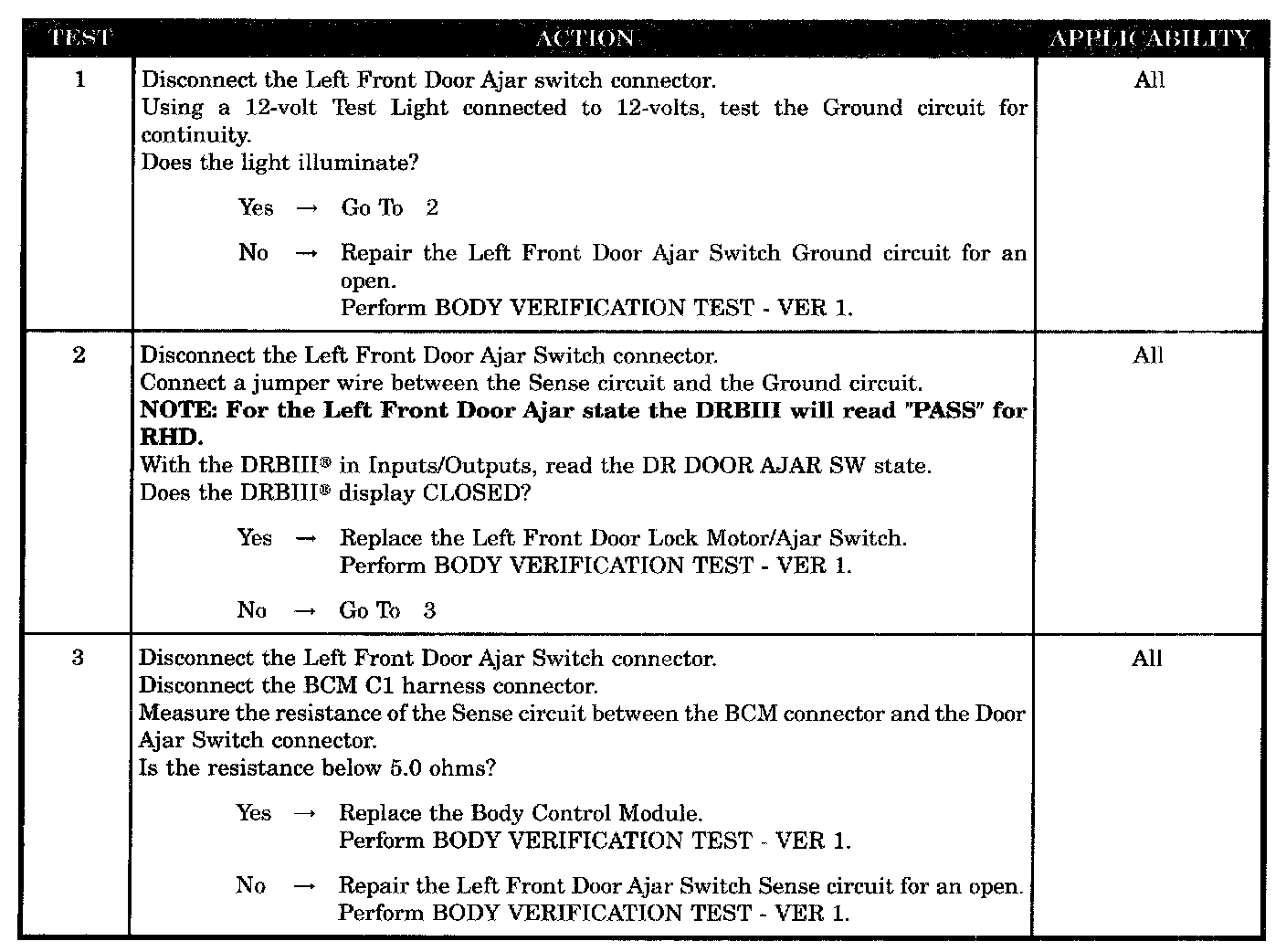 LEFT FRONT DOOR AJAR CIRCUIT OPEN
