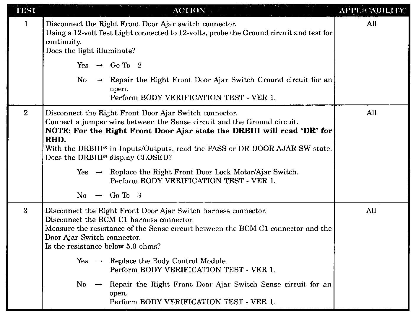 RIGHT FRONT DOOR AJAR CIRCUIT OPEN
