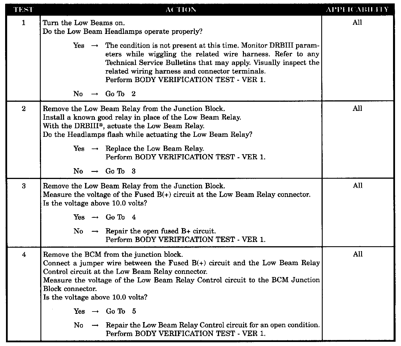 LOW BEAM HEADLAMPS INOPERATIVE