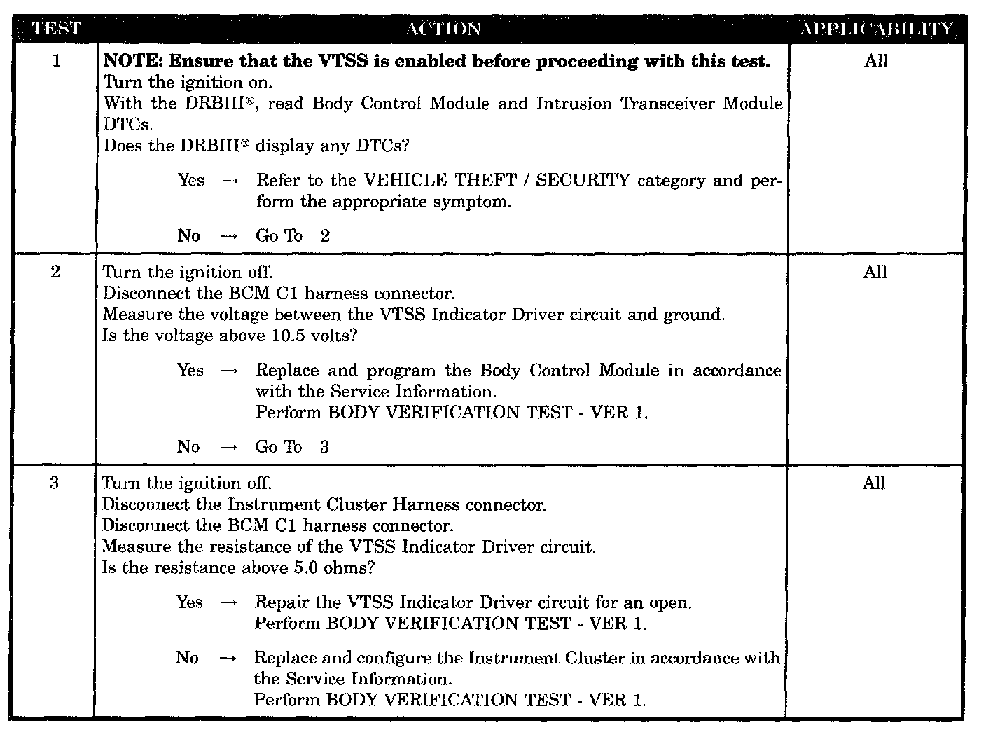 VTSS INDICATOR INOPERATIVE