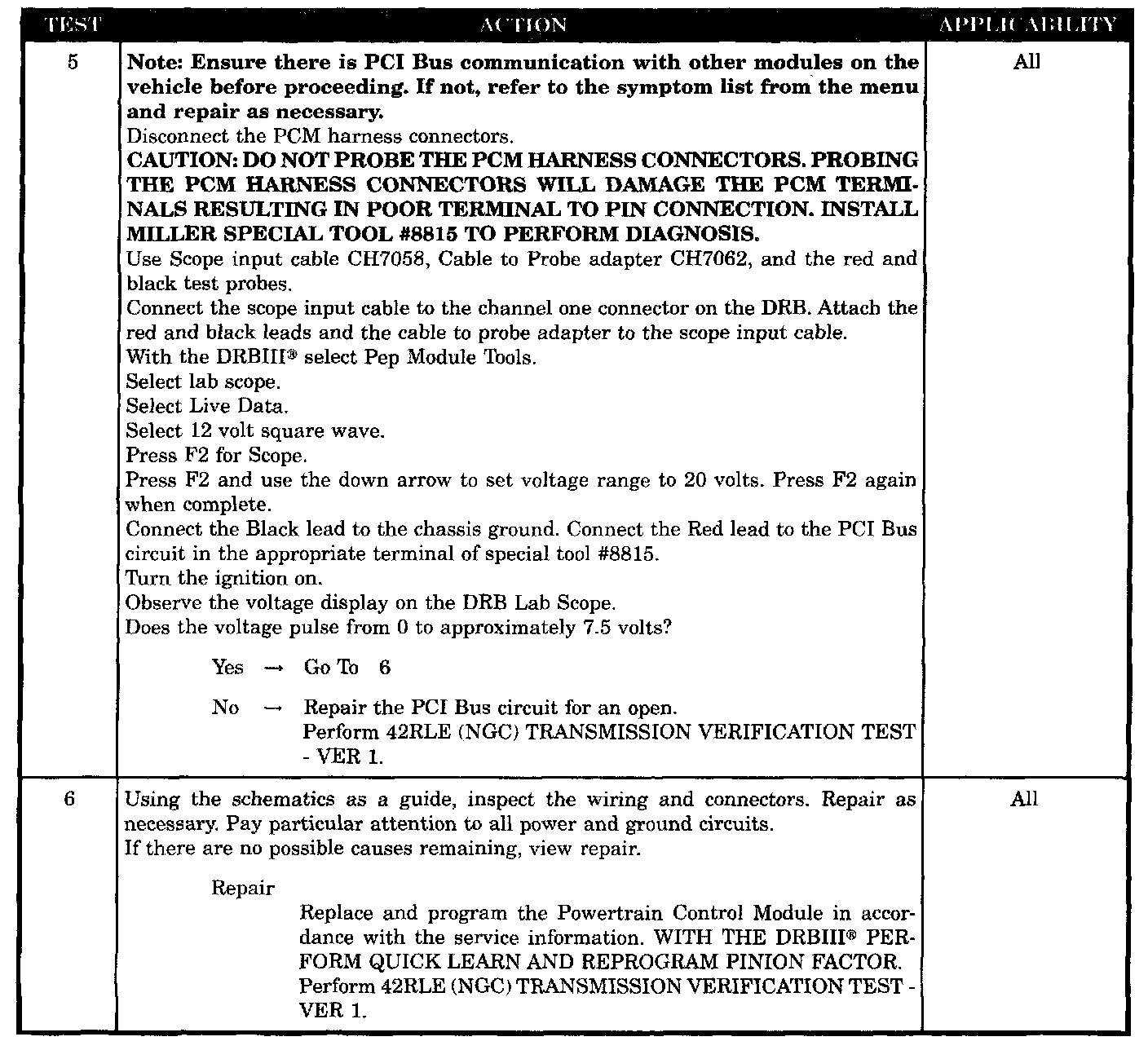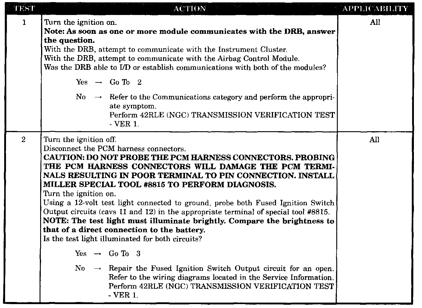 NO RESPONSE FROM TRANSMISSION CONTROL MODULE - NGC