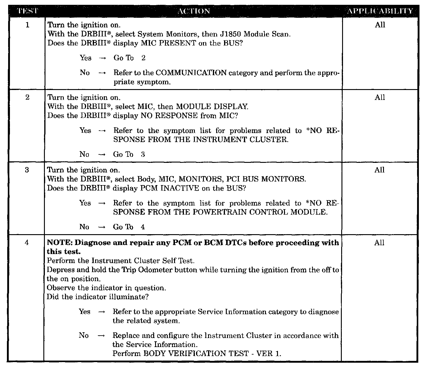 - No response - instrument cluster