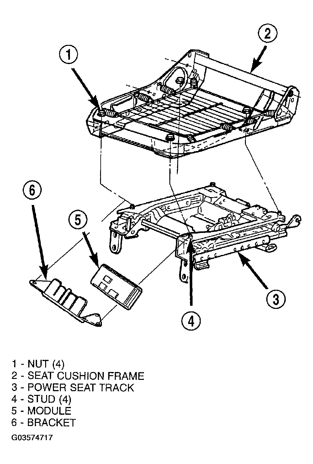 - Remove the driver side front bucket seat from the power seat track unit. Refer to SEAT TRACK ADJUSTER .