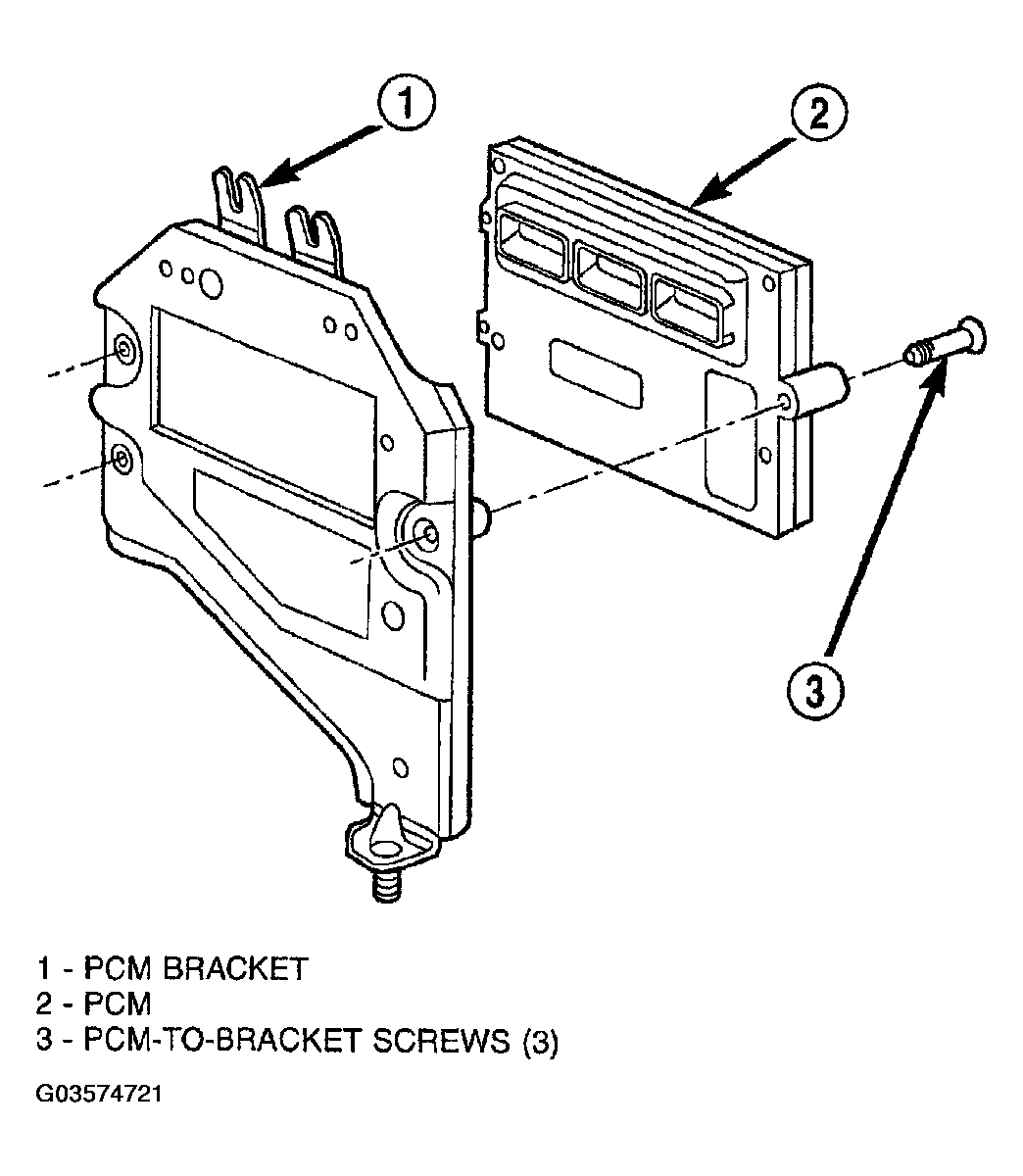 - Remove 3 PCM-to-PCM bracket bolts (screws) (Fig 3 ).