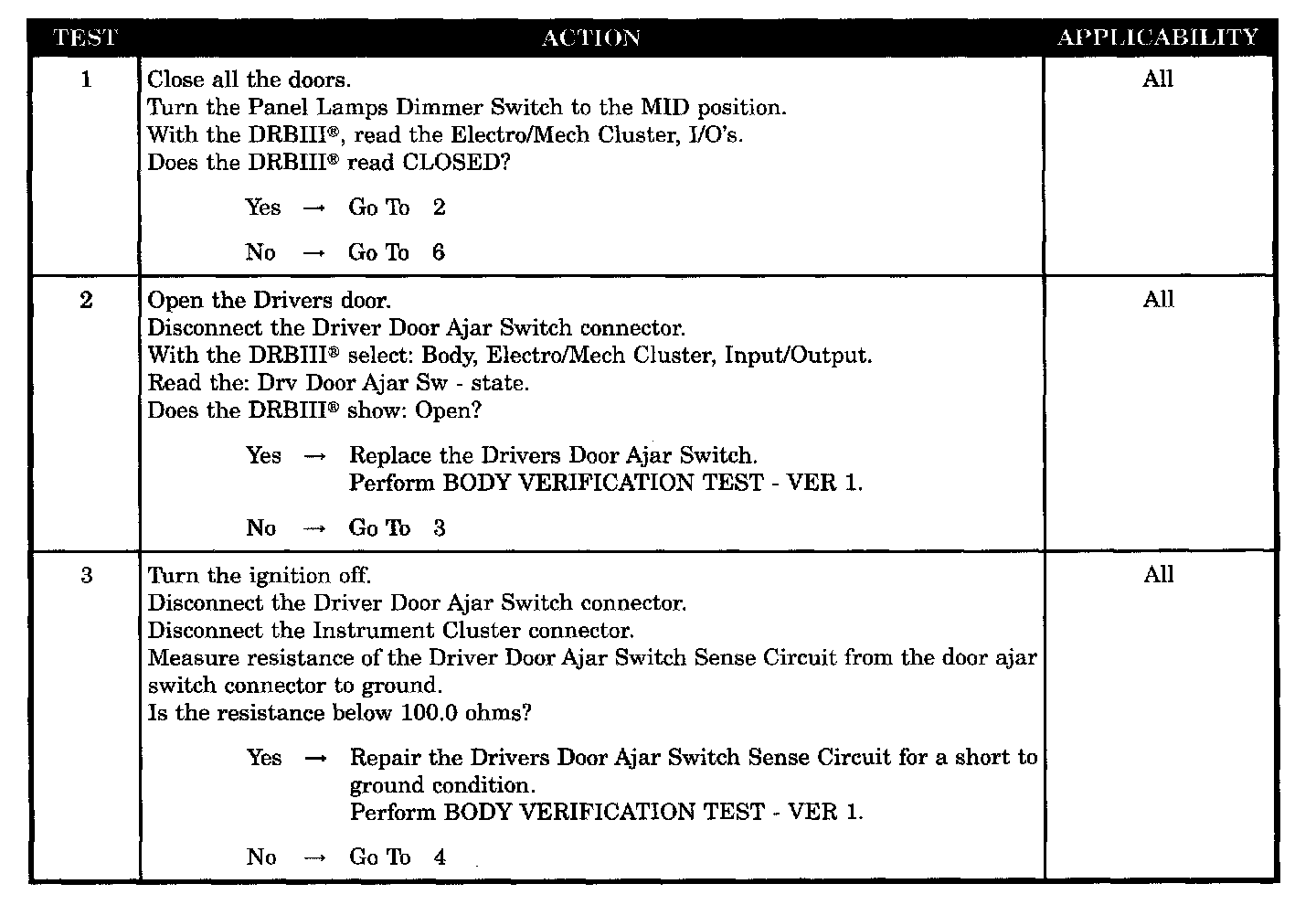 - Drivers door ajar switch sense circuit short to ground