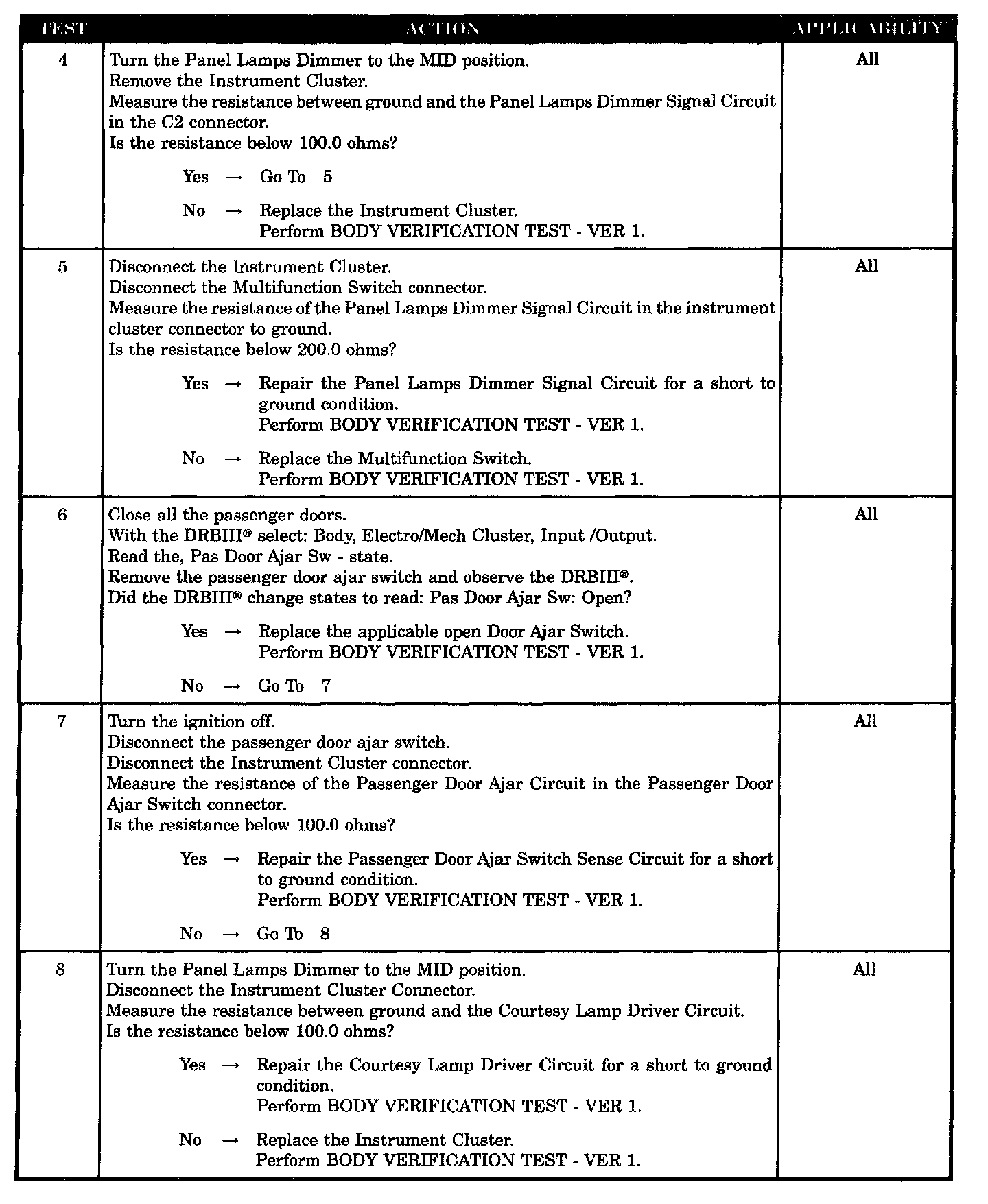 - Panel lamps dimmer signal circuit short to ground