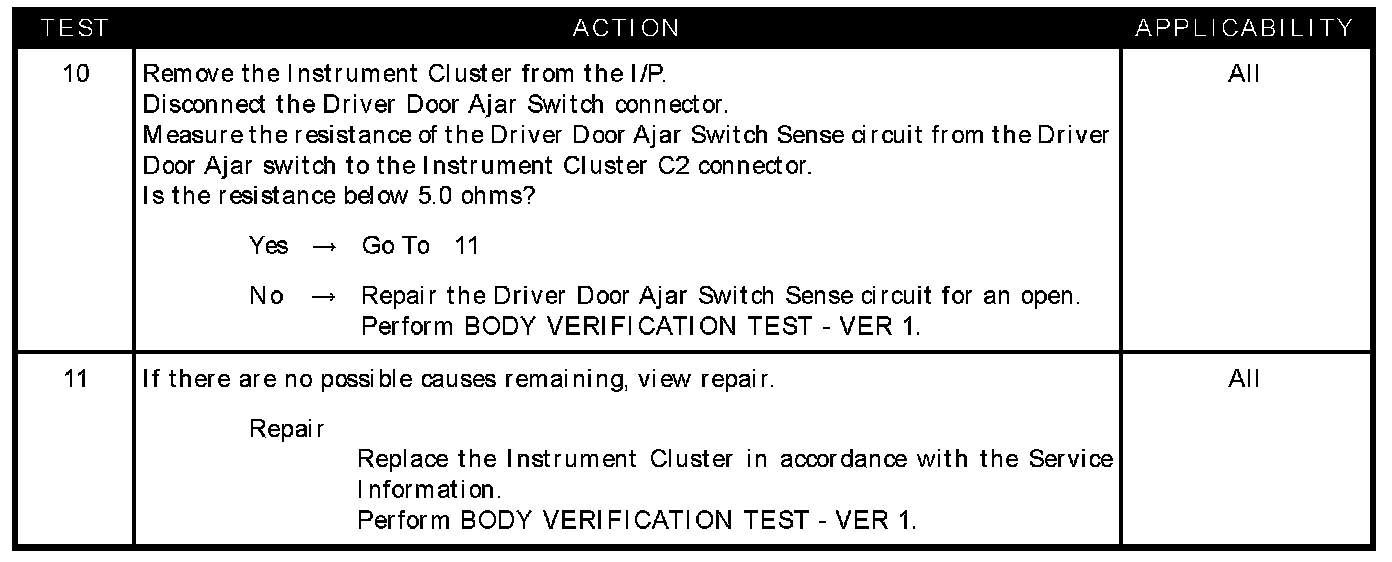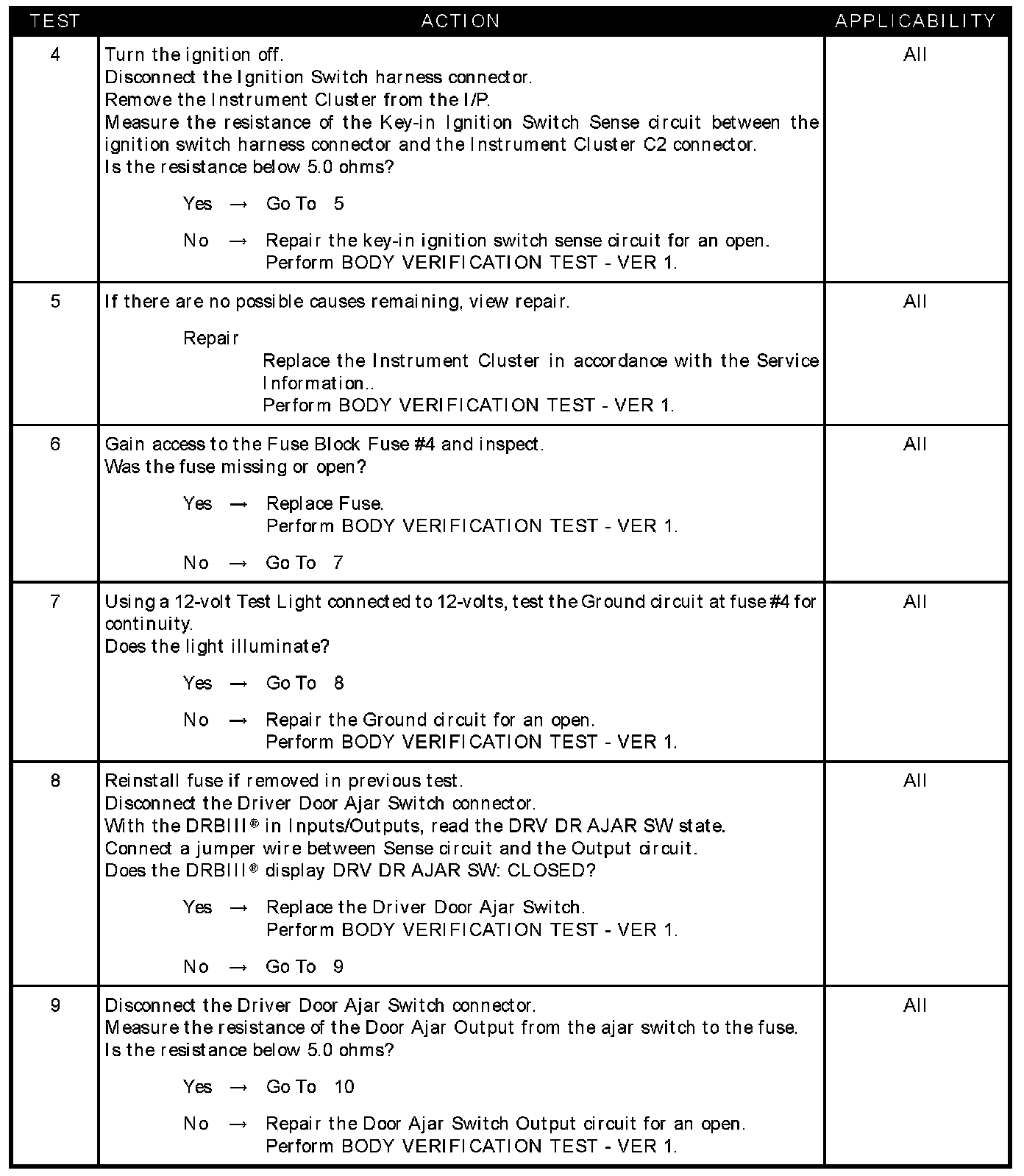 CHIME INOPERATIVE WITH KEY IN IGNITION, DRIVER'S DOOR OPEN