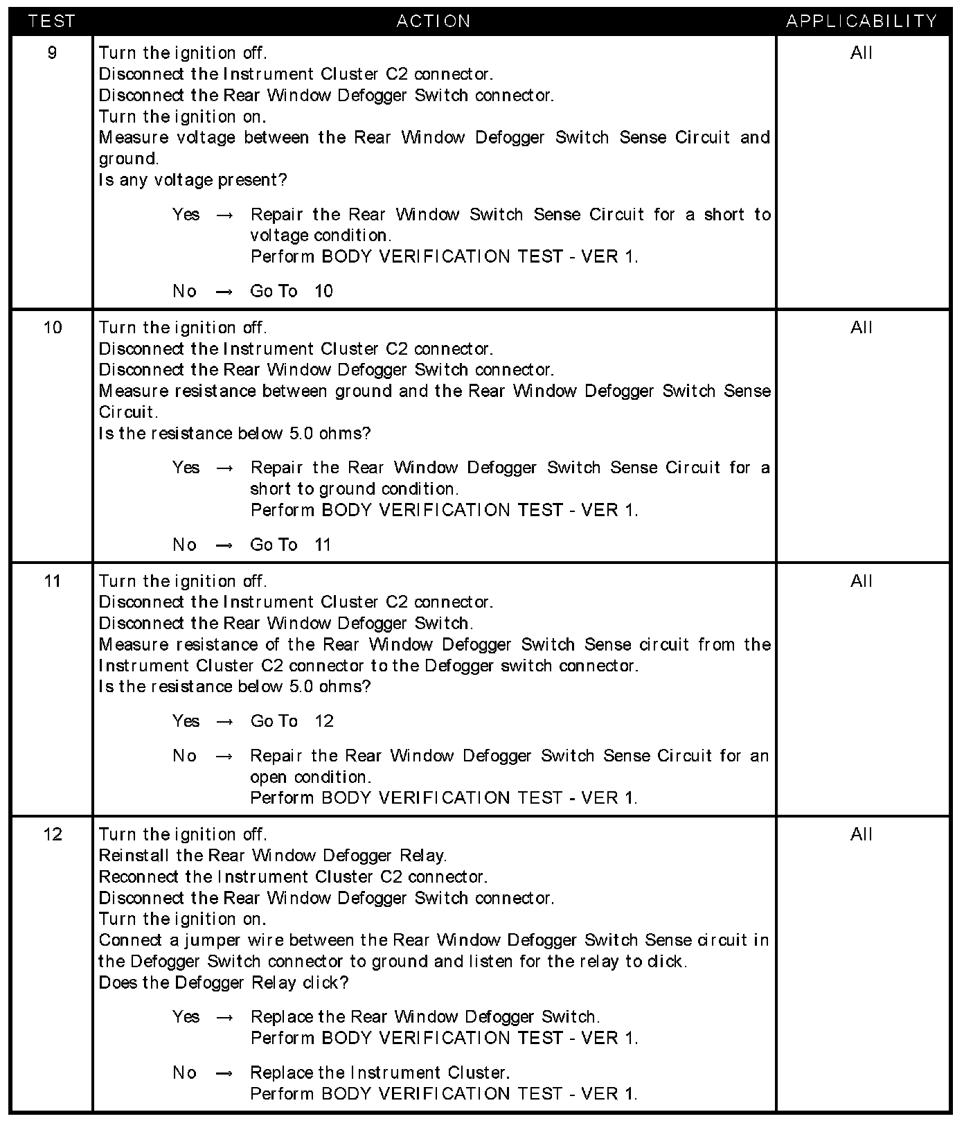 - Rear window defogger switch sense CKT shorted to ground