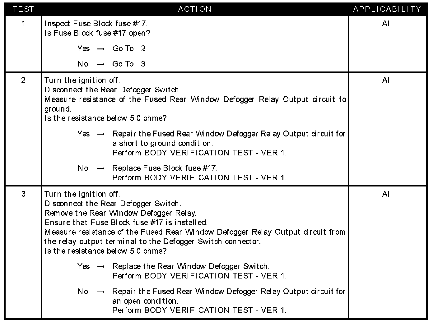 - Fused rear window defogger relay output CKT open