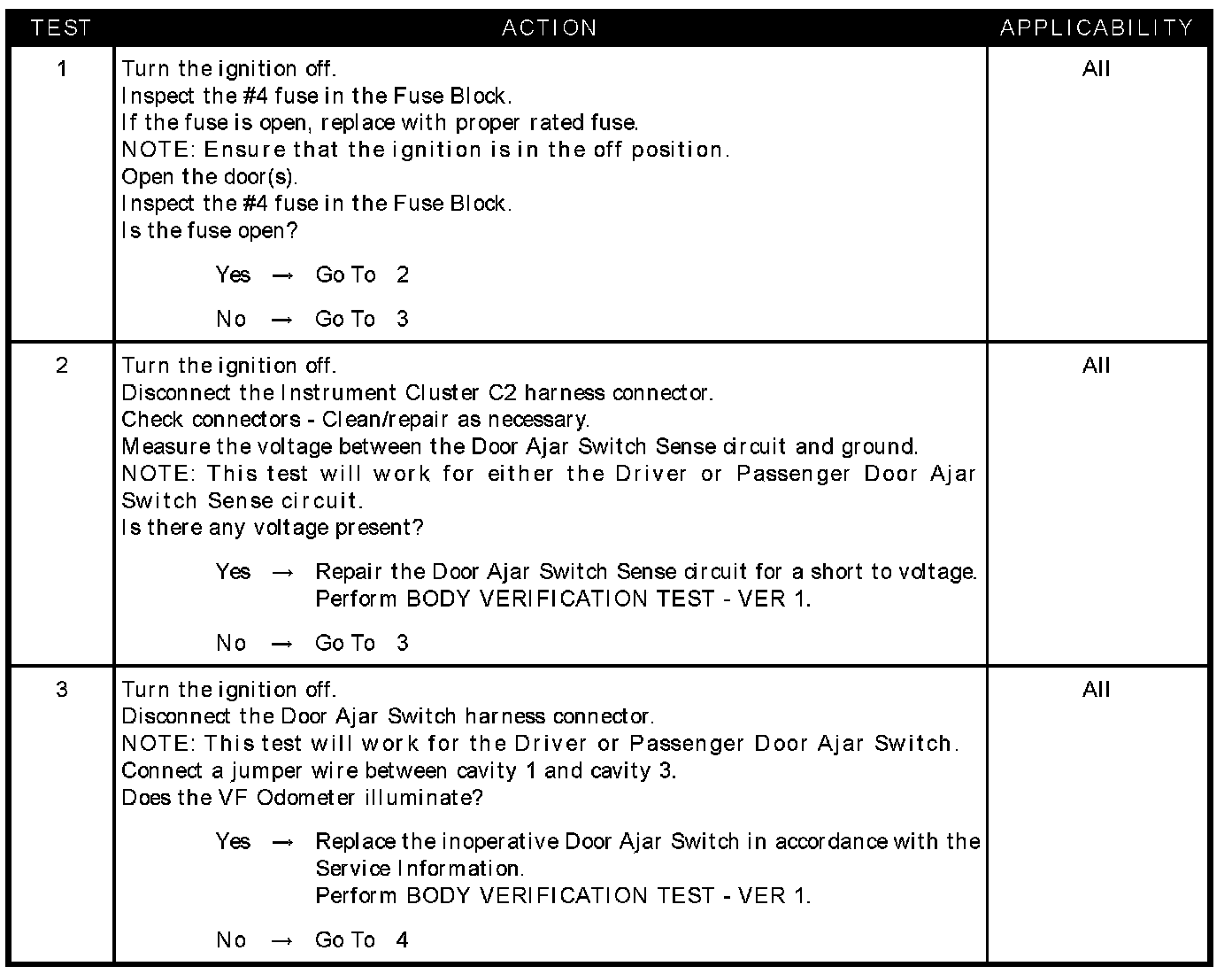 VF ODOMETER INOPERATIVE WITH DOOR OPEN