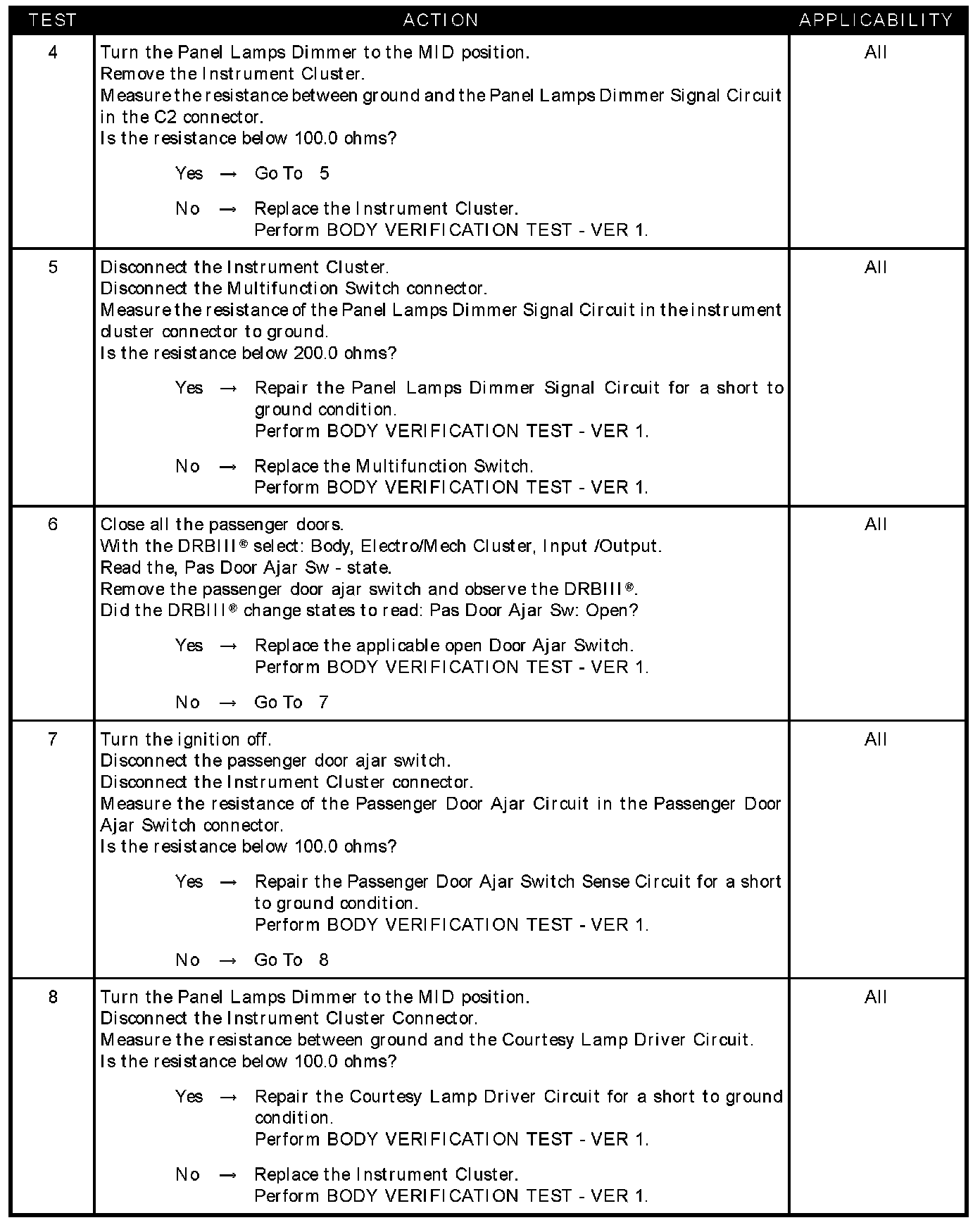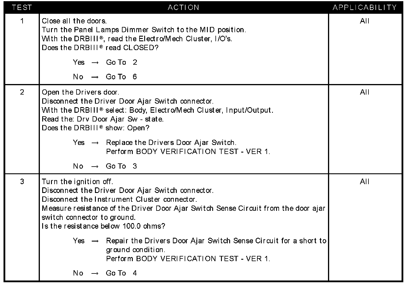 - Drivers door ajar switch sense circuit short to ground