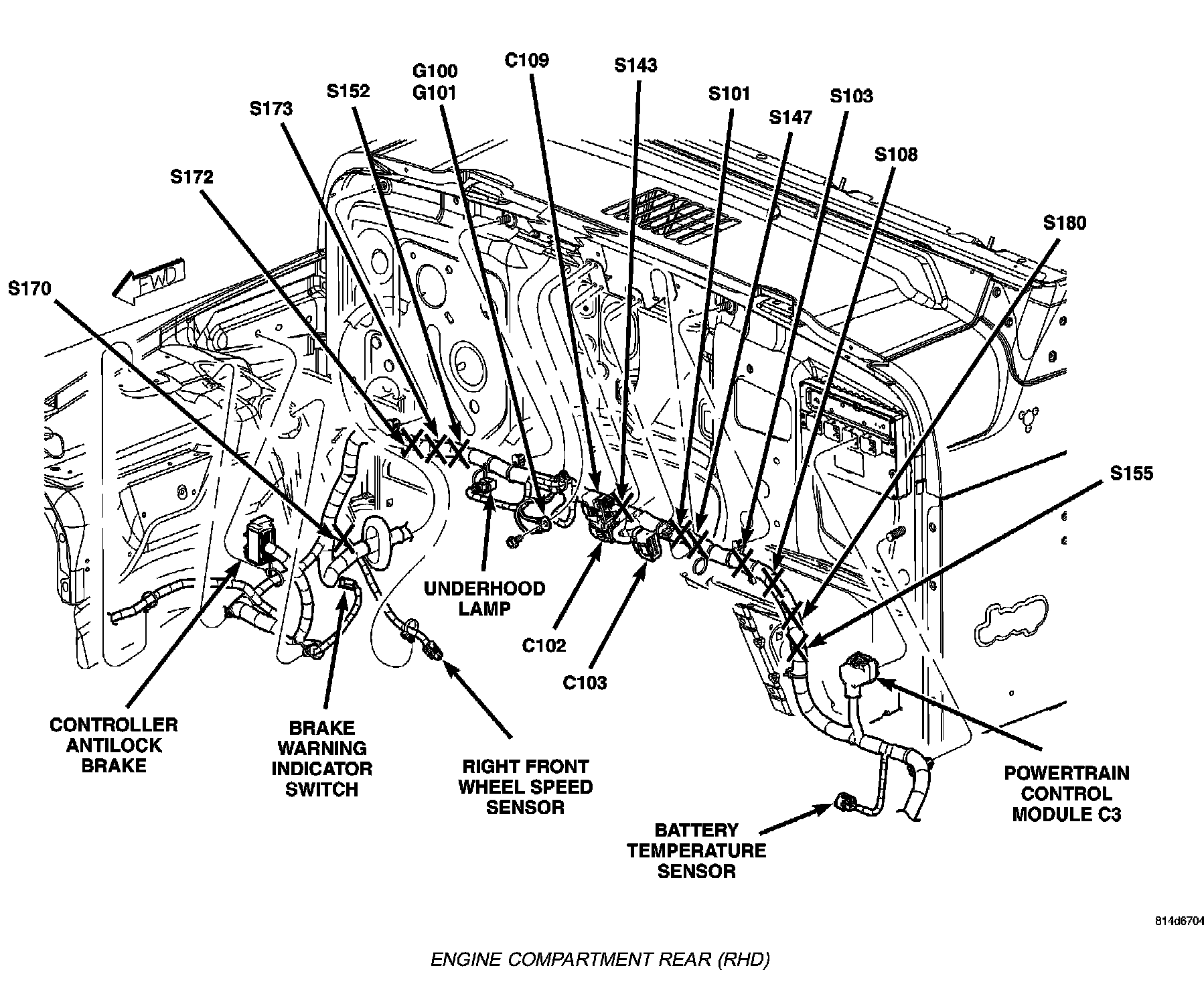 Engine Compartment Rear (RHD):