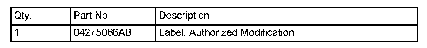 7. Type the necessary information on the "Authorized Modification Label" p/n 04275086AB and attach near the VECI label.