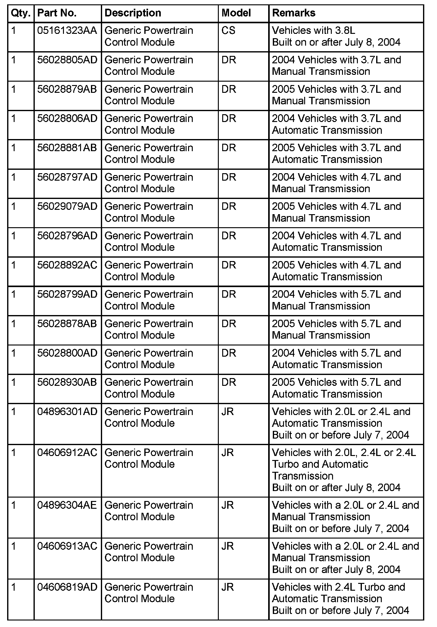 Home >> Jeep >> 2005 >> Wrangler L4-2.4L VIN 1 >> Repair and Diagnosis >> Powertrain Management >> Relays and Modules - Powertrain Management >> Relays and Modules - Computers and Control Systems >> Engine Control Module >> Technical Service Bulletins >> All Technical Service Bulletins >> Engine Controls - Programming Generic PCMs