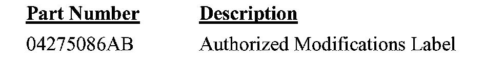 Due to the likelihood that the required labels are already in your parts inventory, no labels will be distributed initially. The following label may be ordered as needed.