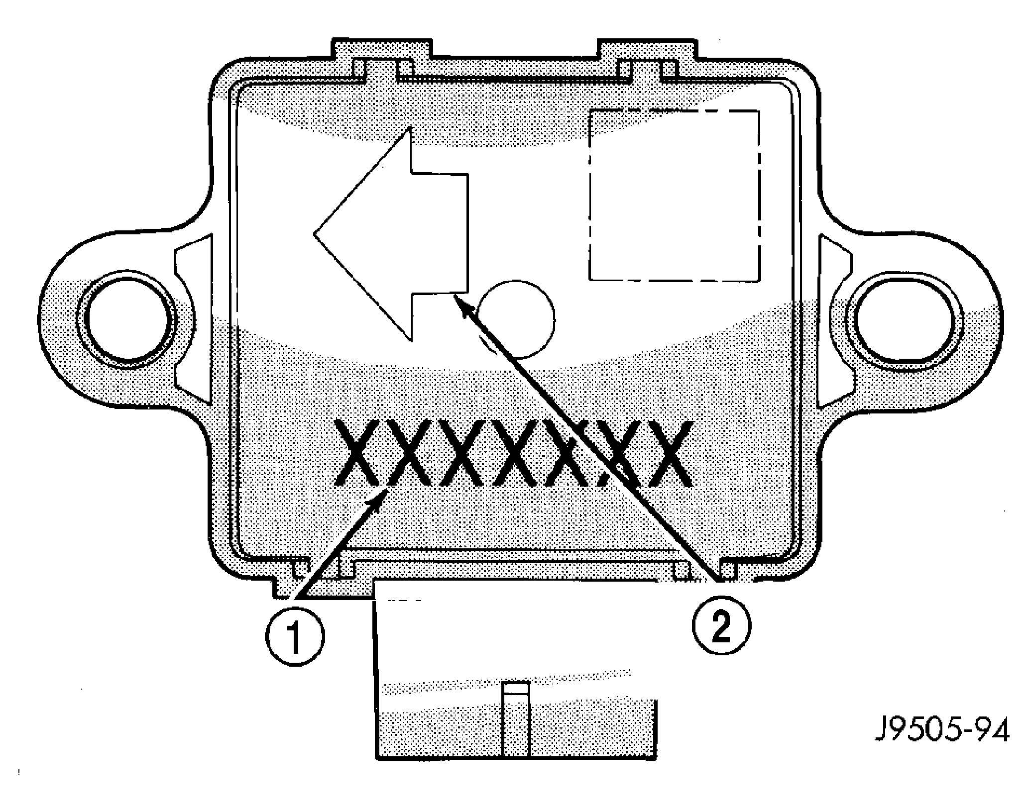 The mercury switch (inside the G-switch), will not function properly if the switch is installed incorrectly. Verify that the switch locating arrow is pointing to the front of the vehicle. See Figure.