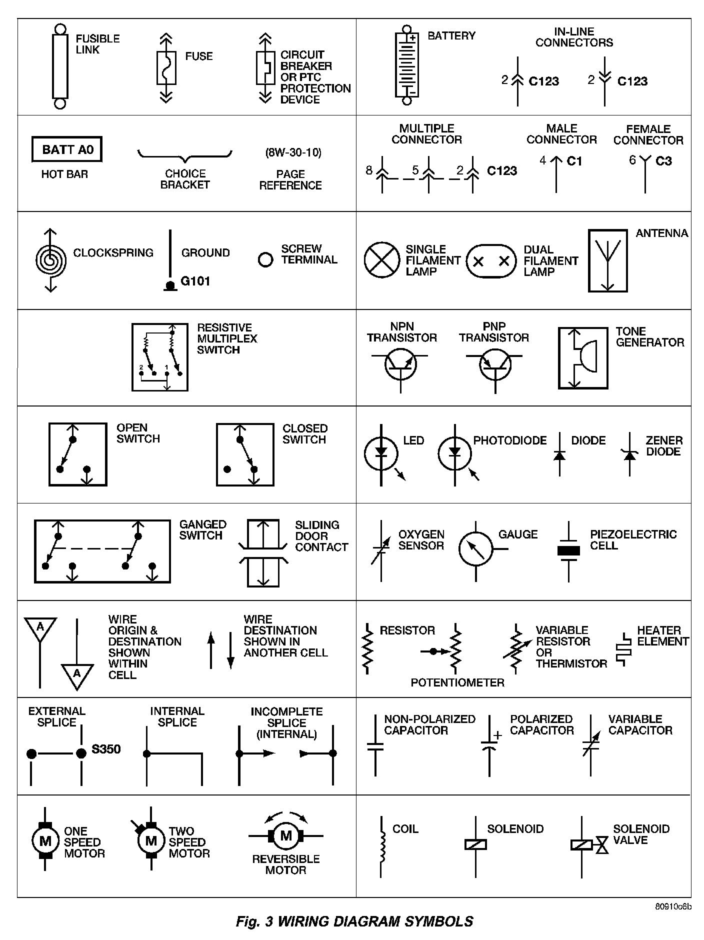 International symbols are used throughout the wiring diagrams. These symbols are consistent with those being used around the world (Fig. 3).
