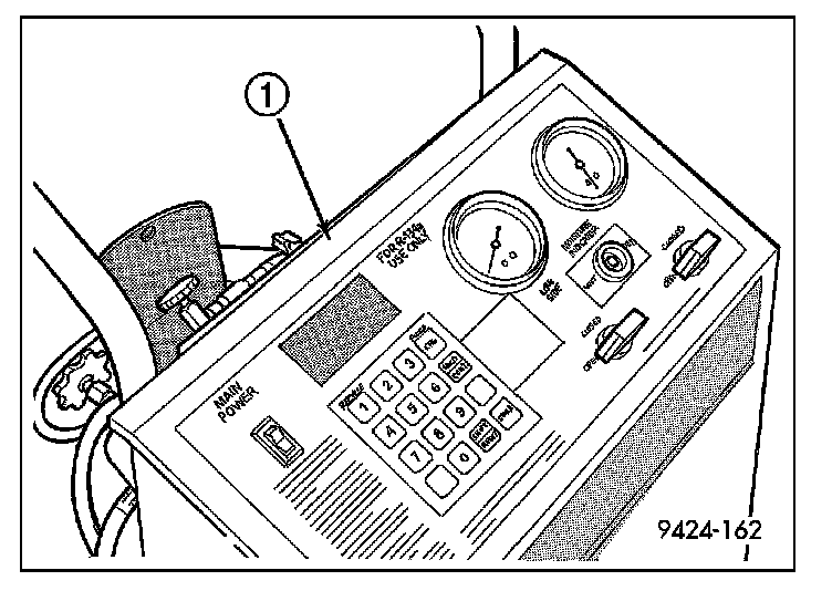 An R-134a refrigerant recovery/recycling/charging station (1) that meets SAE standard J2210 must be used to recover the refrigerant from the R-134a refrigerant system. Refer to the operating instructions supplied by the equipment manufacturer for the proper care and use of this equipment.