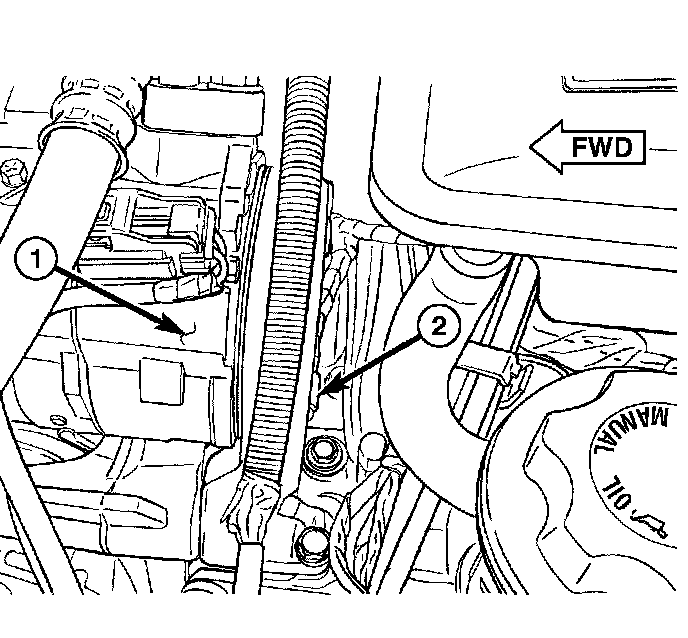 3. Carefully unbolt air conditioning compressor from front of engine. Do not disconnect any A/C hoses from compressor. Temporarily support compressor to gain access to ECT sensor.
