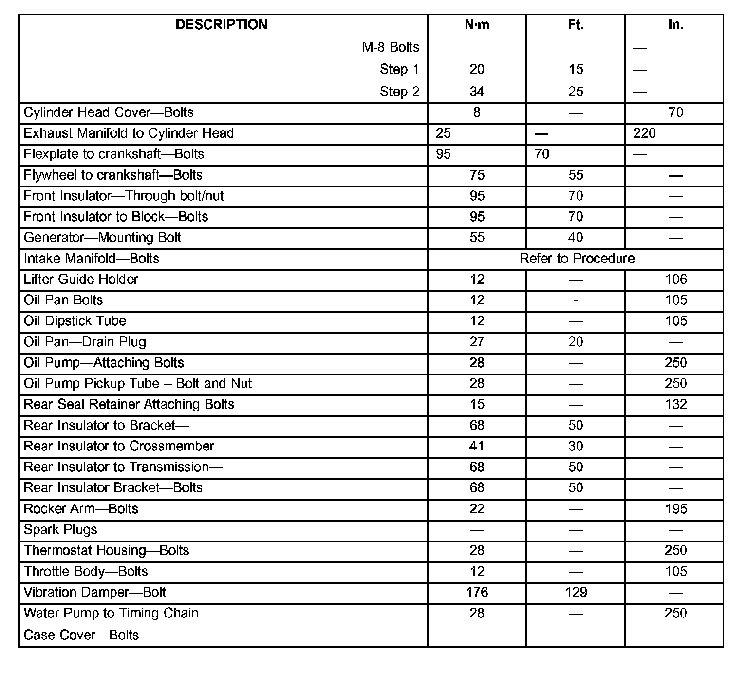 Engine Torque Specifications