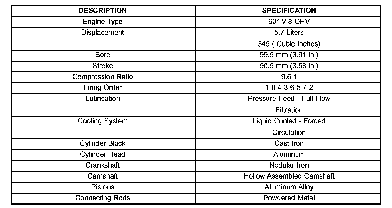 SPECIFICATIONS5.7L ENGINEGENERAL DESCRIPTION: