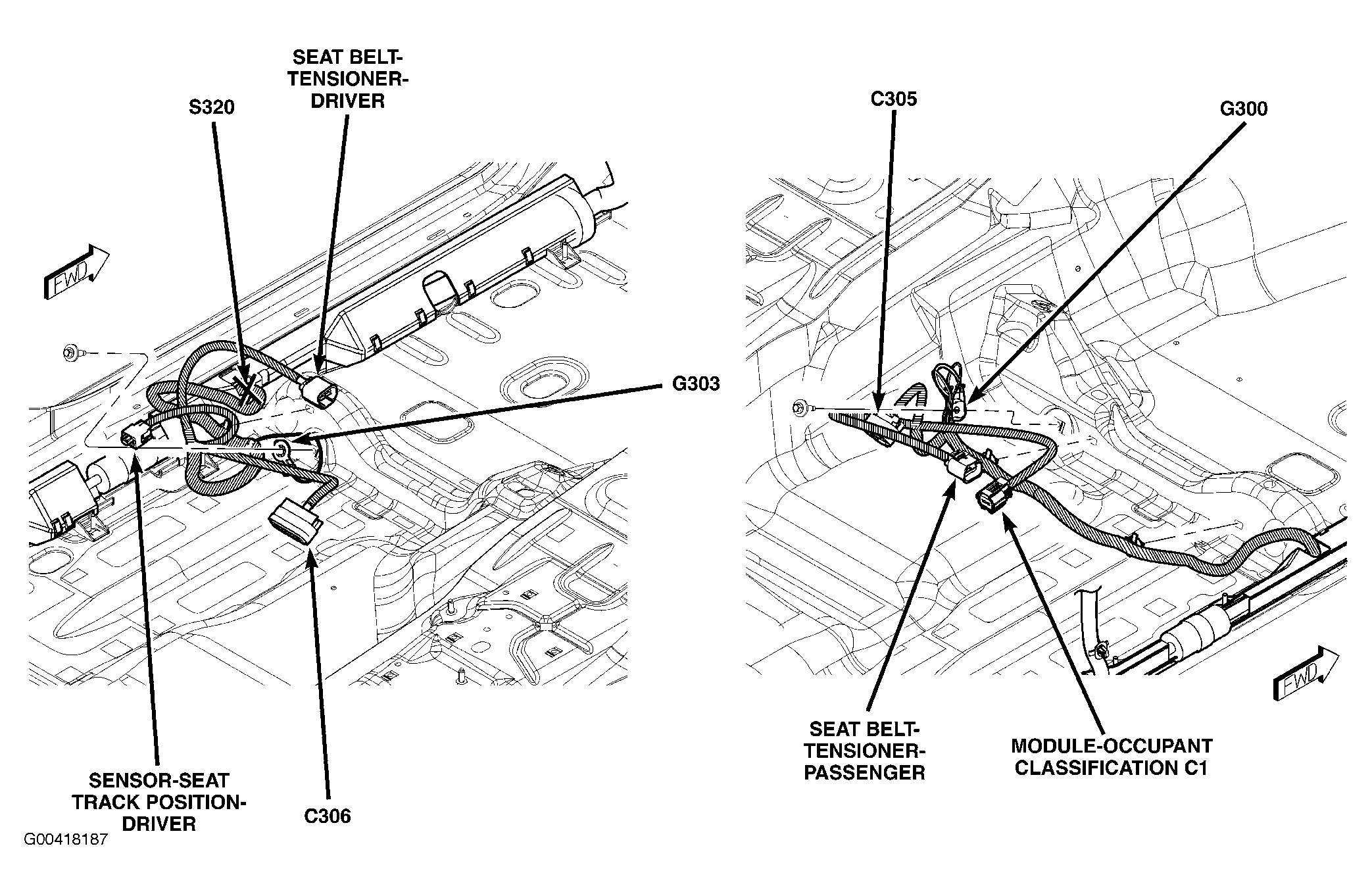 | Occupant Classification Module | Below passenger seat. See Figure. |
