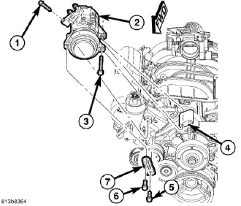 2. Position the A/C compressor onto the accessory mounting bracket (4).
