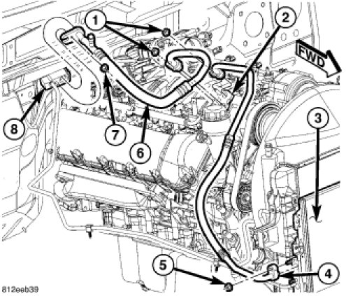 - Tighten bolt (5) to 55 Nm (41 ft. lbs.).