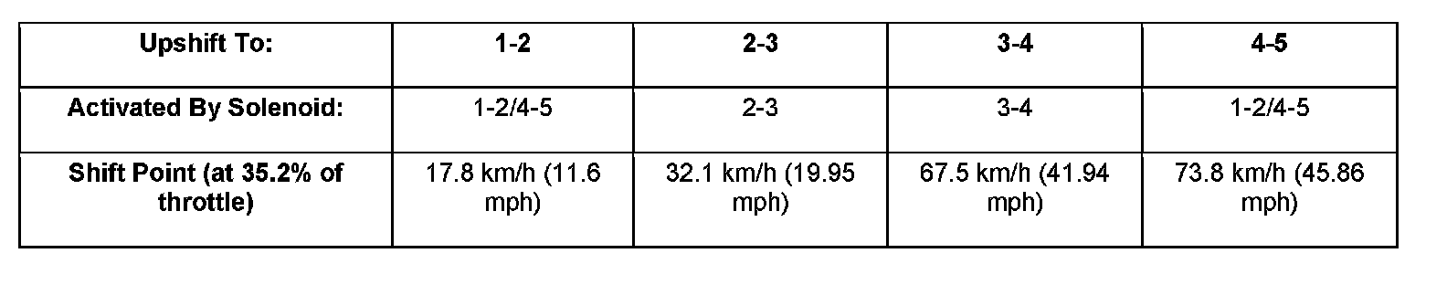 - Accelerating upshift, which is an upshift under a load. For shift time adaptation for the 1-2 upshift to take place, the transmission must shift from 1st to 2nd in six different engine load ranges vs. transmission output speed ranges.