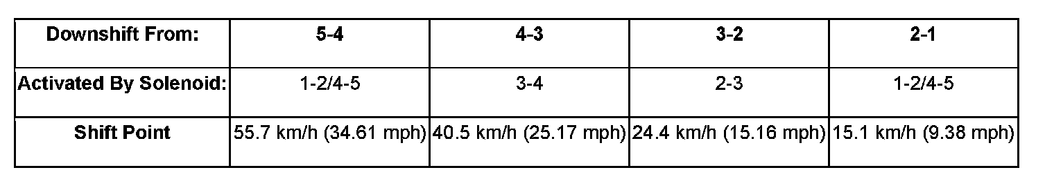 When the TCM detects that system voltage has dropped below 8.5 volts, it disables voltage-dependant diagnostics and places the transmission in the temporary Limp-In Mode. When the TCM senses that the voltage has risen above 9.0 volts, normal transmission operation is resumed.