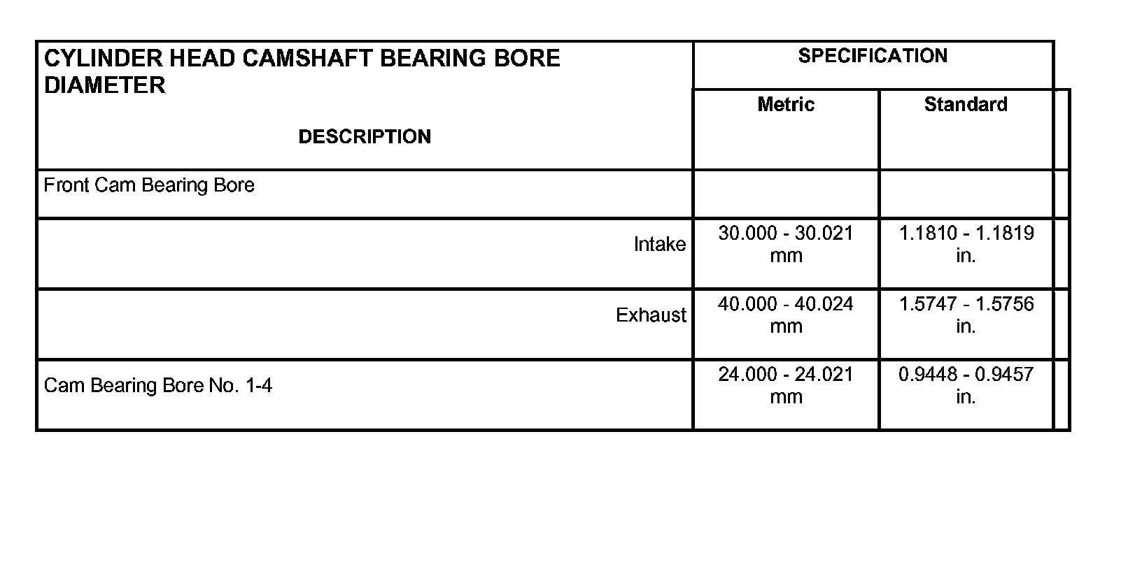Cylinder Head Camshaft Bearing Bore Diameter