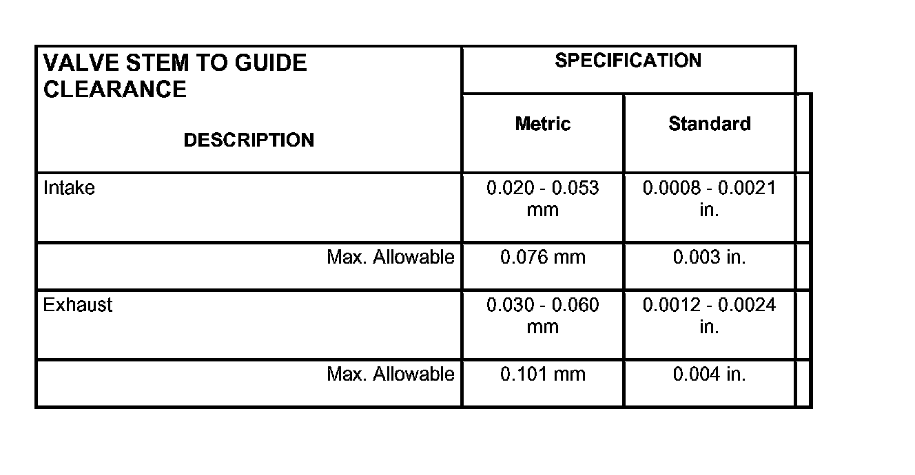 Valve Stem To Guide Clearance: